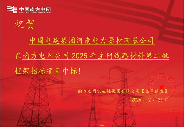 近日,河南器材公司成功中标南方电网公司2025年主网线路材料第二批框架招标项目。此次中标是公司在南方电网市场持续发力的重要成果,充分彰显了公司传统金具产业的核心竞争力,为进一步开拓南方电网市场奠定了坚实基础。 近年来,公司始终坚持以金具主业为核心,一方面持续加大对“两网”市场、特高压线路、防覆冰金具等重点领域的研发投入。另一方面深化与高等院校、科研院所的产学研合作,聚焦抗冰、抗风等行业关键核心技术开展集中攻关,推动研发成果高效转化为市场竞争力,为传统金具产业发展注入强劲新动能。 2026年是“十五五”开局之年,公司将以装备集团“12512”发展战略为指引,牢牢把握高质量发展主题。紧盯“两网”现汇市场优质订单,坚持以技术创新赋能市场开拓,以市场突破反哺产业升级,统筹推进产业结构优化与经营风险防控,在“十五五”新征程上迈出高质量发展的坚实步伐。 |